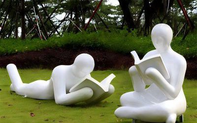 玻璃鋼景觀雕塑有大型景觀、小品擺件之分,大型玻璃鋼景觀雕塑主要用于室外作為一個獨立的園林景觀而存在,小品擺件則適用于室內外各種場所,包括但不限于公園、校園、商場等地方。